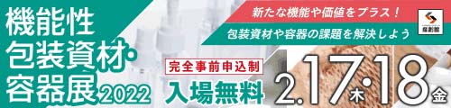 2022年2月17日(木)~2022年2月18日(金)、大阪産業創造館で開催される「機能性包装資材・容器展2022」へ出展いたします。