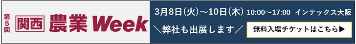 当社は、2022年3月8日(火)~10日(木)、インテックス大阪で開催される「第5回関西農業Week 農業資材EXPO」へ出展いたします。